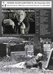 Zum Auftakt der Fromme Helene Kunsttage las Sid Eisengurrer Texte des englischen Dichters und Schriftstellers Charles Bukowski (1920 – 1994). Begleitet wurde er dabei von Axel D. Wolf (Bratsche).