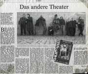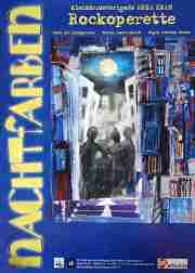 Premiere „Nachtfarben“31. Oktober bis 1. November 2003, Erfurt, Ratsgymnasium Nun war es soweit. Über ein Jahr hatten wir uns mit „Nachtfarben“ die Nächte um die Ohren geschlagen mit all den üblichen Problemen, die die freien Theaterenthusiasten nicht schlafen lassen. Wir haben es geschafft! Natürlich war es ein Kraftakt, aber es hat Spaß gemacht, es gab keine, gut, kaum zwischenmenschliche Querelen. Aber das war natürlich nach den Aufführungen vergessen. Mein Gott haben wir gefeiert. NachtfarbenMusik herunterladen (MP3): Die Rockoperette „Nachtfarben“ ist weder konzeptionell noch kommerziell auf eine bestimmte Zielgruppe ausgerichtet. Dennoch sind der gesellschaftskritische Bezug sowie die musikalische Orientierung des Stückes – Rock 'n' Roll, Punk, Dark Wave, Indie-Pop – Intention der Macher/innen. Die Musik, weil sie kaum zu überhören ist, weil sie vielen viel bedeutet, weil sie ein wichtiger Teil unserer Kultur ist und weil sie sich geradezu für eine Operette anbietet. Und Gesellschaftskritik wiederum, weil sie so vonnöten ist, Zivilcourage gegen Politikverdrossenheit eben. Keinesfalls soll sich dabei ein steifer Zeigefinger zur Moralkeule aufblähen, aber was zu sagen bzw. zu singen, gibt es schon. Natürlich soll die Sache auch Spaß machen. Und da nun mal Gesellschaftskritik, gehaltvolle Musik und Spaß keine antagonistischen Widersprüche sind, da sie sich im Gegensatz, wie jeder, der Spaß versteht, weiß, prächtig ergänzen, wird dieser so grundlegende Aspekt menschlichen Zusammenlebens mit dem nötigen Ernst behandelt. Die Protagonisten der Geschichte sind Julus, Jula, Krumel und Bonsai, vier Jugendliche einer x-beliebigen (Groß) Stadt in einer x-beliebigen Zeit. Ihr Lebensraum oder besser ihre Lebenszeit ist die Nacht. Sie gibt ihnen Distanz zum Alltag, sie gibt ihnen die Möglichkeit, sich zu entfalten und sich auszuprobieren, sie gibt ihnen Schutz. Julus überkommt jedoch zunehmend das Gefühl, dass auch die Nacht sich verändert. Er versucht mit seinen Freunden darüber zu reden, doch diese, allen voran Krumel, wollen nichts davon wissen. Während eines Vorstellungsgespräch bei einer Werbefirma erfährt Jula, dass Julus Recht hatte, die Nacht soll geschäftlichen Interessen anheim fallen. In der Hoffnung, dass sie gemeinsam dagegen vorgehen, erzählt sie es ihren Freunden. Und wie das Leben so spielt, kommen noch Freundschaft, Verrat, Liebe, Gewalt und Korruption dazu. Und dann gibt es ein Wunder und zum bitteren Ende ein Happyend. Organisation: Andreas Jäckel, Sid Eisengurrer, Thilo Soworka, Text: Sid Eisengurrer Musik: André Rauch Bühnenbild: Andreas Jäckel Regie: Andreas Wieske Licht: Thilo Soworka Ton: Guido Graichen Kostüme: Sven Hoffmann Maske / Frisuren: Sandra Zöller In den Rollen: André Rauch, Marah Evita Jevko, Thomas Engelhardt, Sid Eisengurrer, Claudia Geyer, Susann Reim, Uta Weiske, Sven Hoffmann, Sebastian Hilgenfeld, Steffen Hofmann, Andreas Wieske Musiker: Andy Geyer (organ.), Silke Knoll (sax.), Markus Ziegenrücker (git.), Lin Dittmann (drums), Alexander Finke (didgeridoo), Stefan Melzer (perc.), Carina Bachmann (voc.), Andrej Ivanov (git.), André Rauch (git., bass, key.), Wilma Rambow (voice) |