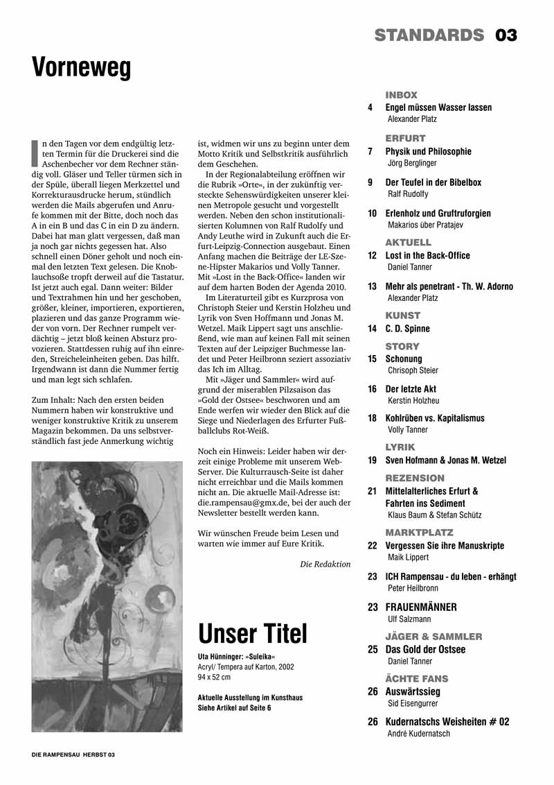 Die Rampensau Herbst 2003 erscheint1.10.2003, Erfurt ![]() rampensau-2 | 04.11.2024 00:02:37 ![]() rampensau-3 | 04.11.2024 00:02:37 ![]() rampensau-4 | 04.11.2024 00:02:38 ![]() rampensau-5 | 04.11.2024 00:02:38 ![]() rampensau-6 | 04.11.2024 00:02:39 ![]() rampensau-7 | 04.11.2024 00:02:39 ![]() rampensau-8 | 04.11.2024 00:02:40 ![]() rampensau-9 | 04.11.2024 00:02:40 ![]() rampensau-10 | 04.11.2024 00:02:41 ![]() rampensau-11 | 04.11.2024 00:02:41 |